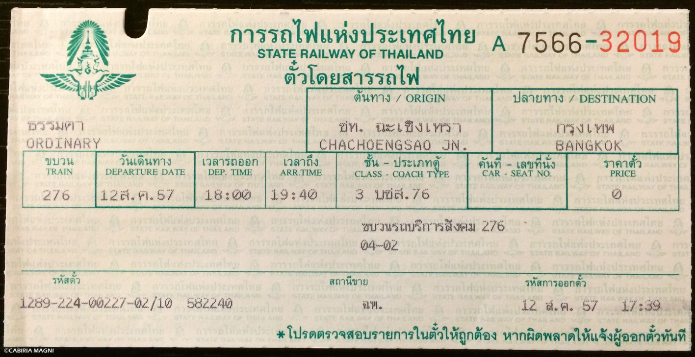 biglietto per Chachoengsao, Thailandia. Cabiria Magni